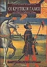... Καθισμένος μεγαλόπρεπα στο θρόνο του, ο Δούκας δέχεται τα προσκυνήματα των αρχόντων, κι ο αυλάρχης προσφωνεί όλους εκείνους που περιμένουν στον προθάλαμο. Κι όπως τα πετεινάρια λαλούνε το \'να μετά από τ\' άλλο, έτσι και δυο υποτελετάρχες επαναλαμβάνουν κατά σειρά την προσφώνηση των ονομάτων... Αγανακτισμένοι οι αγροτικοί πληθυσμοί του ρηγάτου από τους φόρους, τις αγγαρίες, τις στρατολογήσεις, τους προσηλυτισμούς και τις αυθαιρεσίες της βενετσιάνικης Δεσποτείας, καταφέρνουν επιτέλους να ενωθούν και, με επικεφαλής το ριζάρχη Γεώργιο Καντανολέο, να περιορίσουν τους επικυρίαρχους στις τέσσερις καστροπολιτείες του νησιού - Μεγαλόκαστρο, Χανιά, Ρέθυμνο και Σητεία... Η Σοφία, κόρη του μεγαλοφεουδάρχη Ντα Μολίν, και ο Πέτρος, γιος του αρχηγού των επαναστατών, ξεγλιστρούν από τη συνοδεία, χώνονται στις απόμερες αλέες του κήπου και ψάχνουν μεριά που να χαρούνε γρηγορότερα την ευκαιρία του πολυπόθητου αγκαλιάσματος, μεριά που μ\' ένα αδιόρατο φίλημα να ριζώσουν καλύτερα το ποίημά τους... Σύσσωμος ο λαός του νησιού είδε στους επικείμενους γάμους του Πέτρου και της Σοφίας τον τερματισμό των θρησκευτικών και πολιτικών αντιζηλιών που ταλανίζανε το νησί αιώνες τώρα, γι\' αυτό και τους επικρότησε, γι\' αυτό και έκτοτε τους ονόμασε "Κρητικούς γάμους"...