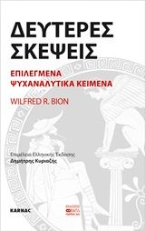 Ο Wilfred Bion είναι αναμφίβολα ένας από τους σημαντικότερους και πιο πρωτότυπους ψυχαναλυτές και στοχαστές του περασμένου αιώνα. Στο βιβλίο του "Δεύτερες σκέψεις" περιέχονται κείμενα που έγραψε τις δεκαετίες 1950 και 1960, στα οποία διατυπώνονται οι θεμελιώδεις θέσεις του για την ψύχωση και την θεραπεία της, την προβλητική ταύτιση, το οιδιπόδειο, αλλά και μια σειρά θεωριών του γύρω από την ψυχαναλυτική κατάσταση, τη σκέψη, το όνειρο και την επιστημολογία της ψυχανάλυσης.