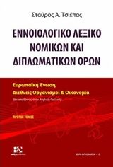 Το λεξικό αυτό περιέχει σύντομες και περιεκτικές επεξηγήσεις για έννοιες και όρους που χρησιμοποιούνται στην Ε. Ένωση, σε Διεθνείς Οργανισμούς (όπως ΟΗΕ, ΝΑΤΟ, ΟΑΣΕ κλπ), στην διπλωματική πρακτική και στην δημόσια διοίκηση εν γένει. Έχουν συμπεριληφθεί όροι της τεχνολογίας και πληροφορικής καθώς και νεολογισμοί από πολλούς κλάδους, οι οποίοι συναντώνται συχνά στην καθημερινή πρακτική όσων ασχολούνται με την Ευρωπαϊκή Ένωση και την διεθνή πολιτική και οικονομία γενικότερα. Ο πρώτος τόμος αρχίζει με το Εννοιολογικό Λεξικό νομικών και διπλωματικών όρων, Ευρωπαϊκή Ένωση, Διεθνείς - Οργανισμοί και Οικονομία, στα ελληνικά. Στο τέλος κάθε όρου ακολουθεί απόδο-ση στην αγγλική και γαλλική γλώσσα. Ο πρώτος τόμος συμπληρώνεται με το Εννοιολογικό Λεξικό ξενόγλωσσων όρων (κυρίως αγγλικών, γαλλικών και λατινικών), οι οποίοι αποτελούν σύνολο καθιε-ρωμένων όρων της διεθνούς πολιτικής και διπλωματίας, αλλά και νέων όρων-εννοιών σε διάφορους τομείς, κυρίως της οικονομίας. Ο δεύτερος τόμος περιλαμβάνει Φρασεολόγιο νομικό-διπλωματικό, Ε.Ενωσης, διαπραγματεύσεων, διοικητικών όρων, κλπ (ελληνοαγγλο-γαλλικό), Ορολογία της διαδικασίας του Δικαστηρίου της Ευρωπαϊκής Ένωσης, σύντομο Ενδυματολογικό Παράρτημα (υπό Α. Αδαμίδη) και τρία άλλα Παραρτήματα υποδειγμάτων (γαλλικά, αγγλικά, ελληνικά) με κείμενα από διάφορους τομείς της διπλωματικής πρακτικής, στο διμερές και πολυμερές επίπεδο, με έμφαση στην Ευρωπαϊκή Ένωση. Ειδικότερα οι όροι-έννοιες που έχουν συμπεριληφθεί καλύπτουν κυρίως τους εξής τομείς: δίκαιο της Ε. Ένωσης κεκτημένο Schengen διεθνές δίκαιο και διεθνείς σχέσεις δικονομία (εθνική και της ΕΕ) διοικητικό δίκαιο διπλωματική και εν γένει διοικητική πρακτική οικονομική πολιτική με έμφαση σε ζητήματα οικονομικής κρίσης.