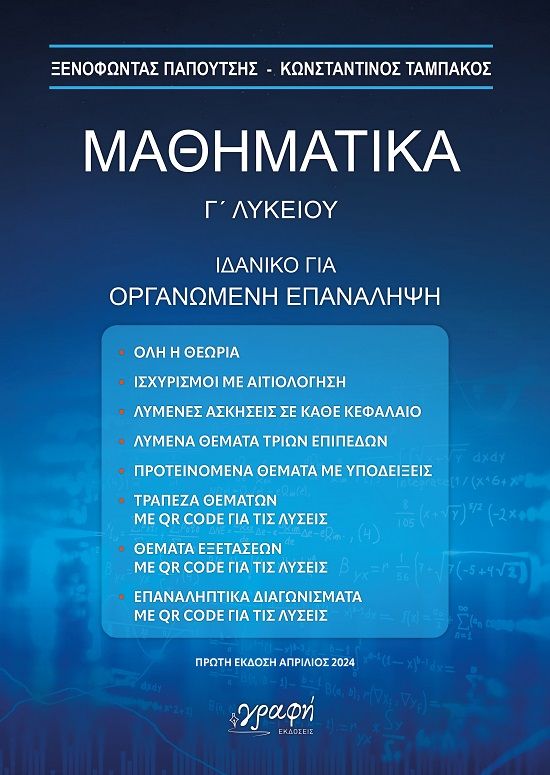 Το βιβλίο «Μαθηματικά Γ΄ Λυκείου. Οργανωμένη επανάληψη» αποτελεί το επιστέγασμα της πολύχρονης πορείας και πείρας των συγγραφέων στη διδασκαλία των μαθηματικών προσανατολισμού της Γ΄ τάξης του Γενικού Λυκείου. Αποτελεί πολύτιμο βοήθημα για κάθε υποψήφιο για τις πανελλήνιες εξετάσεις αλλά ταυτόχρονα και για κάθε εκπαιδευτικό που διδάσκει το μάθημα. Ακολουθεί και συμπληρώνει το σχολικό βιβλίο αλλά δεν το αντικαθιστά.