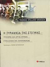 Ποιος θα το περίμενε ότι τα εργαλεία εξοικονόμησης χρόνου όπως το φάιλοφαξ, το e-mail, και το κινητό τηλέφωνο θα κατέληγαν να περιορίζουν τον διαθέσιμο χρόνο περισσότερο από ποτέ; Αφού θεωρητικά είμαστε καλωδιωμένοι 24 ώρες το εικοσιτετράωρο, πρέπει να αγωνιστούμε για το δικαίωμα να μην είμαστε διαθέσιμοι, για το δικαίωμα να ζούμε και να σκεπτόμαστε πιο αργά. "Η τυραννία της στιγμής" είναι ένα βιβλίο που έλειπε από την ελληνική βιβλιογραφία. Έχοντας μεταφραστεί ήδη σε 18 γλώσσες, ασχολείται με ψύχραιμο και μεθοδικό τρόπο με τους σημερινούς "καιρούς της βιασύνης". Δείχνει πώς φαινόμενα όπως οι "σαπουνόπερες", η ηλεκτρονική αλληλογραφία, το fax, οι νεανικές κουλτούρες, η διαφήμιση, η "ευέλικτη εργασία" διακατέχονται από την ίδια λογική, που βασίζεται στην κοινωνία της πληροφορίας, όπως και τον τρόπο με τον οποίο εντάσσονται στην ιστορία της σύγχρονης κοινωνίας. Ταυτόχρονα δείχνει τις σημερινές αντιφάσεις που διαπερνούν την τεχνολογικοκρατούμενη σύγχρονη κοινωνία. Τα προλεγόμενα της καθηγήτριας Ιωάννας Καυτατζόγλου αποκαλυπτικά. Υπογραμμίζουν τη σπουδαιότητα του έργου αφού καταδεικνύουν ότι τα μέτρα που προτείνει το βιβλίο για την εξασφάλιση του αργού χρόνου θα μπορούσαν να πάρουν τη μορφή ενός κινήματος το οποίο θα διατηρεί τα κενό, θα προασπίζεται το διάλειμμα, θα διεκδικεί την απόλαυση και την ηδονή των αισθήσεων. Το βιβλίο περιλαμβάνει εκτενείς βιβλιογραφικές και άλλες αναφορές καθώς και ελληνόγλωσσο και ξενόγλωσσο ευρετήριο όρων και ονομάτων.