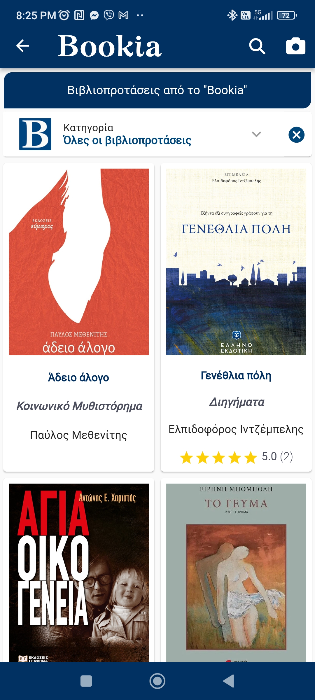 Επιπλέον, στις βιβλιοπροτάσεις, μπορείτε να επιλέξετε να δείτε διακριτά και τα προτεινόμενα βιβλία ανά κατηγορία, από καθένα από τα βιβλιοφιλικά site.