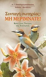 Το "μη μεριμνάτε" είναι σαφής εντολή του Θεού! Ουσιώδης για τη ζωή μας, όπως όλες τους. Οι Πατέρες προβαίνουν σε διαχωρισμό της "κοσμικής" (ή της "βιοτικής") μέριμνας και της "μέριμνας κατά Θεό". Τονίζουν πως για την δεύτερη, την κατά Θεό μέριμνα, δηλαδή για την πνευματική μας πρόοδο και τη σωτηρία, πρέπει να φροντίζουμε ακατάπαυστα, γιατί αυτή βέβαια είναι η ουσιαστική και η αιώνια. Η άλλη, η τόσο προσωρινή και μάταιη, πρέπει να μας απασχολεί ως τον βαθμό που να καλύπτει τις ανάγκες του βίου, και μάλιστα του σήμερα μονάχα! Και του αύριο; Αυτές, όπως και το ίδιο το αύριο, θα το αφήνουμε με πίστη και απόλυτη εμπιστοσύνη στα χέρια του Θεού και την Πρόνοιά Του. Εκείνου που φροντίζει για όλα τα δημιουργήματά Του. Ωστόσο εμείς κάνουμε το αντίθετο ακριβώς! Όχι μόνο τρέχουμε για το σήμερα, αλλά και για το αύριο και για το μεθαύριο! Κι όχι μόνο για τα αναγκαία της ζωής, αλλά και για πολύ περισσότερα απ\' αυτά! Έτσι πέφτουμε στην παγίδα του άγχους, της ανασφάλειας και της αγωνίας, γιατί θέλουμε όλα να τ\' αποκτήσουμε και μάλιστα με τις δικές μας και μόνο δυνάμεις, παραμελώντας πλήρως την φροντίδα για την ψυχή και τη σωτηρία μας. Μια κατάσταση που κάνει κυριολεκτικά μαρτύριο τη ζωή μας! Τα επιχειρήματα των Πατέρων κι ο τόσο παραστατικός τους λόγος, θα μας πείσουν για όλα. Και θα μας καλύψουν πλήρως όλες τις ενστάσεις και τις απορίες.