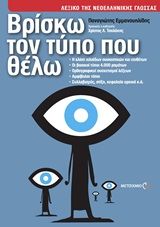 Το πρωτότυπο λεξικό "Βρίσκω τον τύπο που θέλω" μας απαλλάσσει από την αμηχανία που νιώθουμε πολλές φορές καθώς αναρωτιόμαστε πώς γράφεται ένας γραμματικός τύπος, πώς πρέπει να τονίσουμε μια λέξη κ.ά. Τα λήμματα μπορούν να καταταχτούν στις ακόλουθες κατηγορίες: