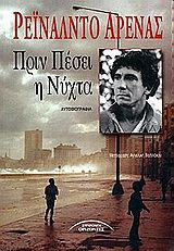 "Δίνω τέλος στη ζωή μου γιατί δεν μπορώ να εξακολουθήσω να εργάζομαι. Κανένα από τα πρόσωπα που με περιβάλλουν δεν ευθύνεται γι\' αυτή την απόφαση. Μόνο ένας είναι ο υπεύθυνος: ο Φιδέλ Κάστρο". Στις 7 Δεκεμβρίου 1990 ο Κουβανός συγγραφέας Ρεϊνάλντο Αρένας, ασθενής στο τελικό στάδιο του AIDS αυτοκτονεί στη Νέα Υόρκη. Αφήνει πίσω του αυτή την ανατριχιαστική προσωπική και πολιτική μαρτυρία, την οποία ολοκλήρωσε λίγες μέρες πριν βάλει ο ίδιος τέρμα στη ζωή του, λίγο πριν πέσει η τελευταία νύχτα, σκεπάζοντας ανέκκλητα μια θυελλώδη ζωή, σημαδεμένη από την ανελέητη καταδίωξη, το φρενήρες πάθος για τον έρωτα, το αδιάκοπο κυνήγι της λύτρωσης μέσω της λογοτεχνίας. Ο Αρένας, όντως συγκέντρωνε τρεις ιδανικές προϋποθέσεις για να μετατραπεί σε έναν από τους απόκληρους που γεννά η ανακριτική και σωφρονιστική κόλαση της καστρικής Κούβας: ήταν συγγραφέας, ομοφυλόφιλος και αντιφρονών. Όσες προσπάθειες κι αν έγιναν να αποσιωπηθεί αυτό το βιβλίο, όπως και το υπόλοιπο έργο του συγγραφέα, δεν στάθηκαν ικανές να σκιάσουν την οδυνηρή πορεία του Αρένας από τον υπόκοσμο της Αβάνας, όπου σέρνονται οι αποκλεισμένοι του συστήματος, και τις φυλακές της Κρατικής Ασφάλειας, ως τον αγώνα για επιβίωση στις ΗΠΑ, ενάντια στη διακριτική ουδετερότητα της επαναπαυμένης Αριστεράς που τον ανέμενε, όπως και κάθε άλλο Κουβανό εξόριστο.